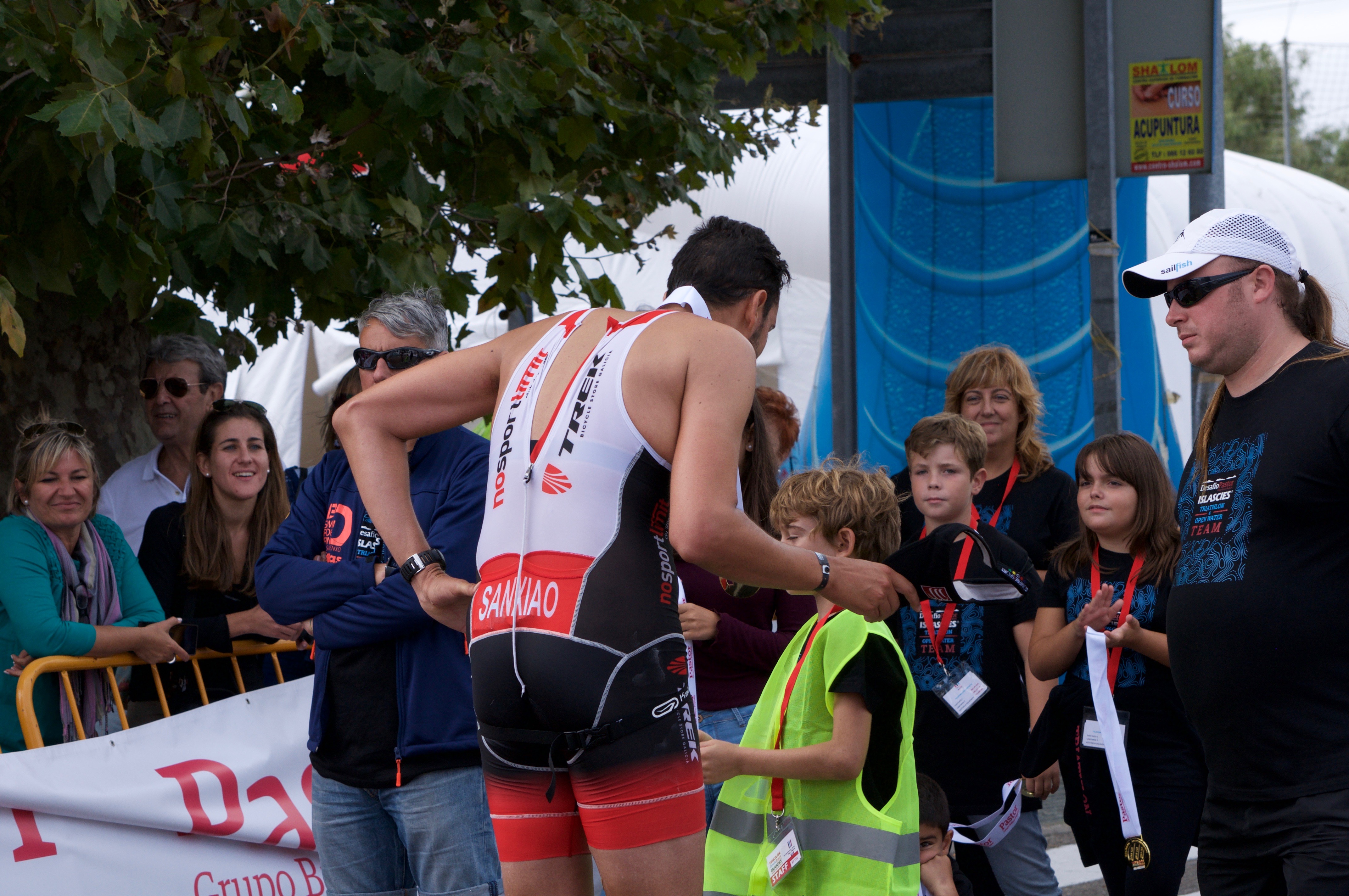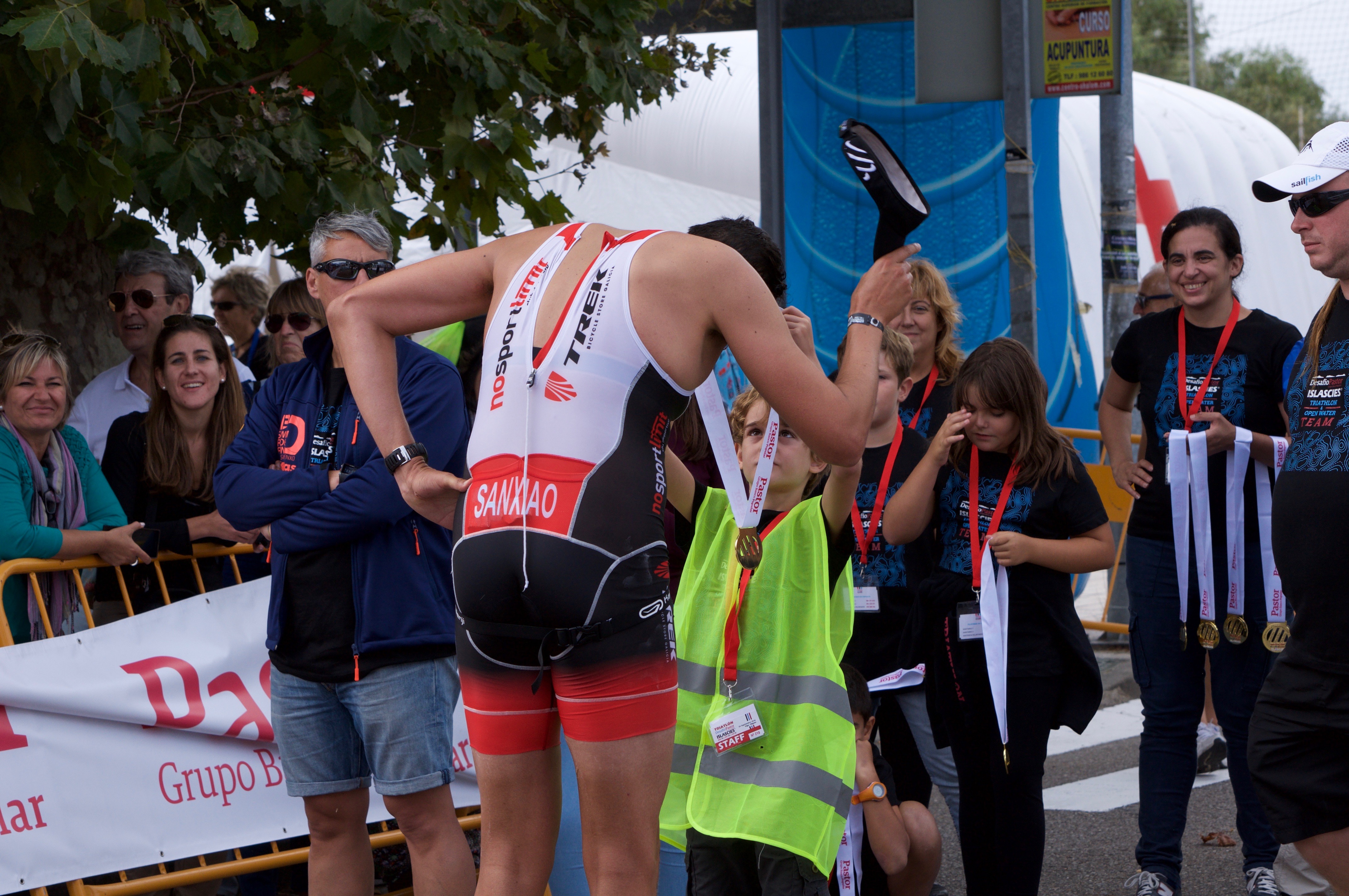 Cuando estás 5 horas seguidas compitiendo es difícil que alguien se imagine que puedas disfrutar, pero hay momentos en los que lo haces, de verdad. Momentos de subidón, animado por el público, los voluntarios o los compañeros, momentos en los que animas tú a otros, momentos en los que ves a compañeros que lo están haciendo bien, y te alegras por ellos. Así que sí, definitivamente se puede disfrutar haciendo un medio ironman.